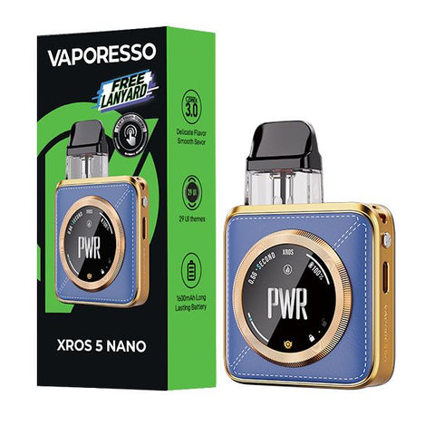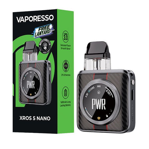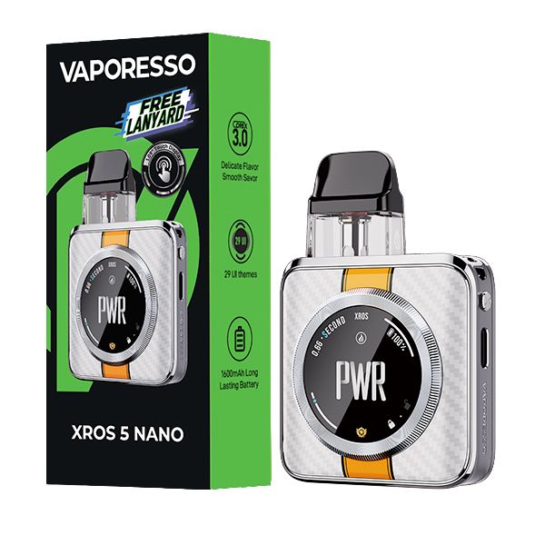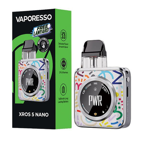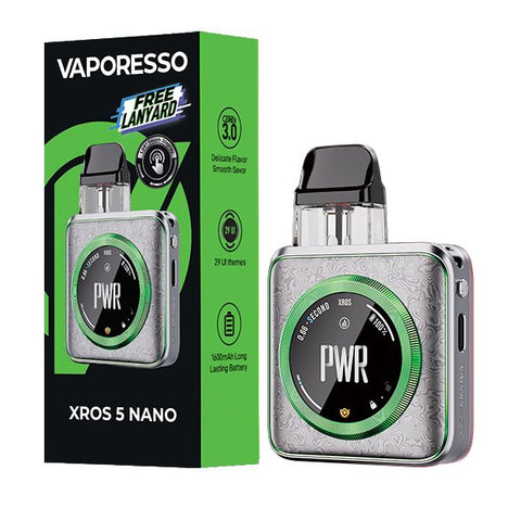The Vaporesso XROS 5 Nano packs a slick, lightweight build backed by a 1600mAh battery, 30W max power, and fast 2A charging to keep you going. With Power, ECO, and Normal modes plus spot-on airflow control, you can dial in every hit your way. Weighing only 86 grams and featuring an ultra-sleek design, the XROS 5 NANO redefines lightweight portability. Its 1.09-inch precision touchscreen offers access to more than 29 dynamic themes, allowing users to customize their experience with a simple swipe.