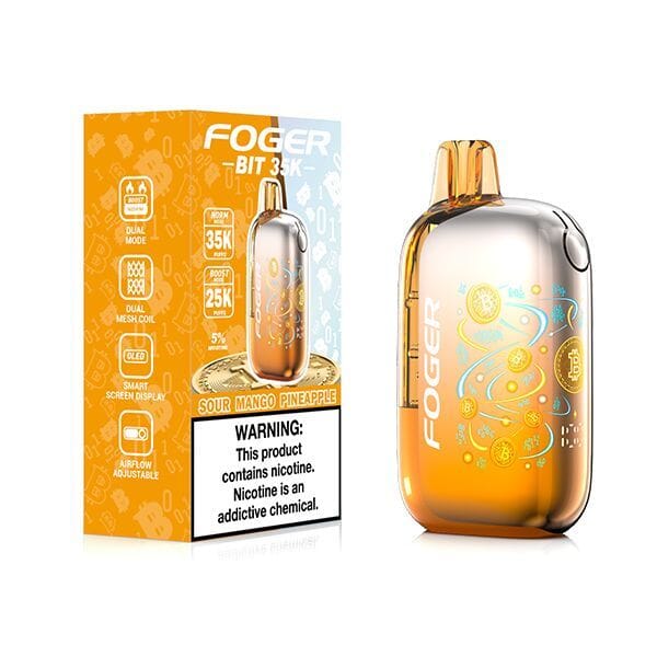 Experience the Foger Bit 35K Disposable, a high-performance device packed with features and style. Powered by a rechargeable 850mAh battery, it delivers up to 35,000 puffs and features dual mesh coils for bold, consistent flavor. A clear tank lets you easily monitor e-liquid levels, while the sleek 3D curved OLED screen displays battery life and chip activity in real time.